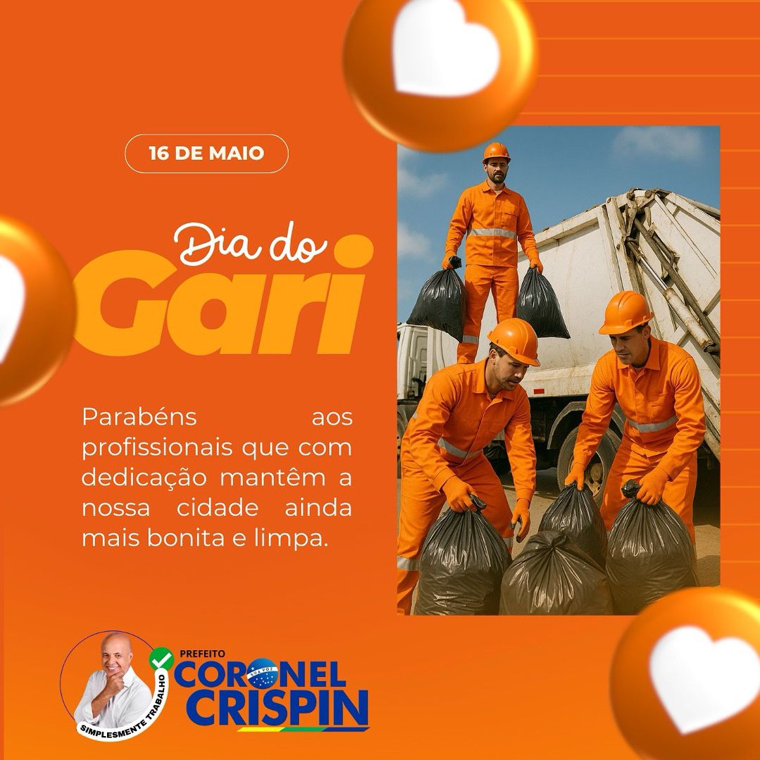 Parabéns a todos os garis pelo trabalho essencial que realizam com dignidade, enfrentando sol, chuva e tantos desafios, sempre com o compromisso de servir à população.