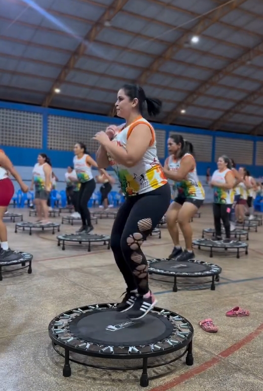 Na última quinta-feira, o Projeto Vidas Ativas deu mais um passo importante em São Miguel do Guaporé, com a entrega das camisetas oficiais e o início das aulas de jump voltadas para as mulheres participantes. O encontro foi marcado por muita energia, animação e disposição, reforçando o compromisso do projeto em incentivar hábitos saudáveis e a prática de atividades físicas.