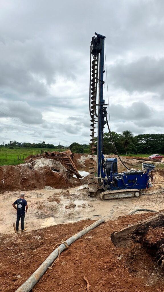 A obra encontra-se em fase de execução, com a realização dos serviços técnicos iniciais, que compreendem a mobilização de equipamentos pesados, terraplenagem, escavação, perfuração do solo para implantação das fundações profundas, cravação de estacas, montagem de formas e preparação da base estrutural, seguindo rigorosamente os critérios técnicos e normativos da engenharia civil.